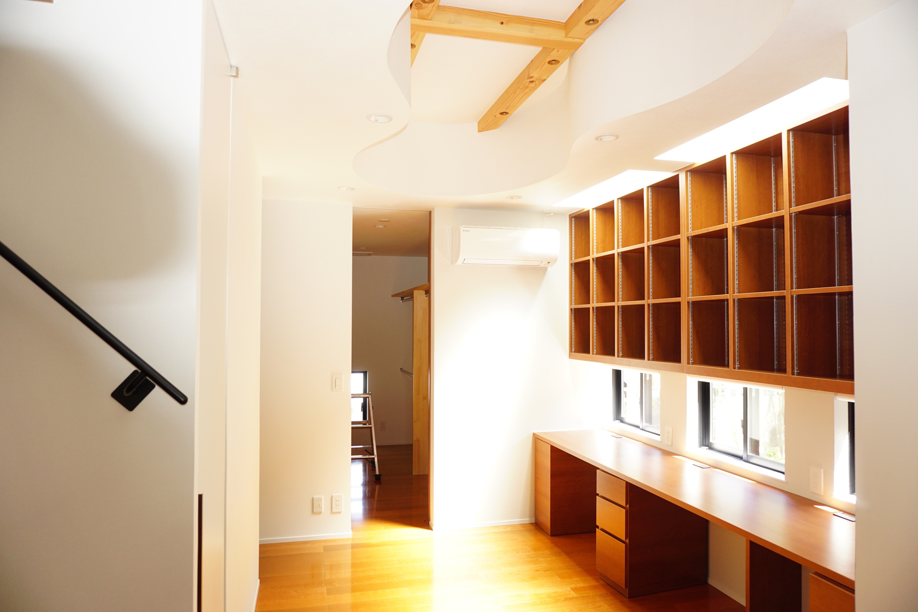 5人家族の新築でした。子供さんの運動のため雲梯が天井にあったり、広い吹き抜けのあるリビングなどこだわりがいっぱい詰まった家です。